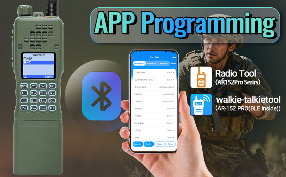 - Phone Programming & Copy Frequency: By simply pairing with your mobile device, you can swiftly input and adjust frequencies.It streamlines the process, eliminating complex cables and enhancing user convenience. Easily decipher the frequency of another ham walkie talkie without the need for computer programming