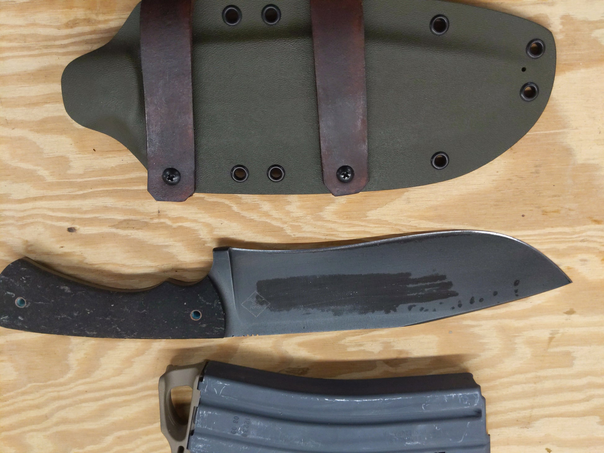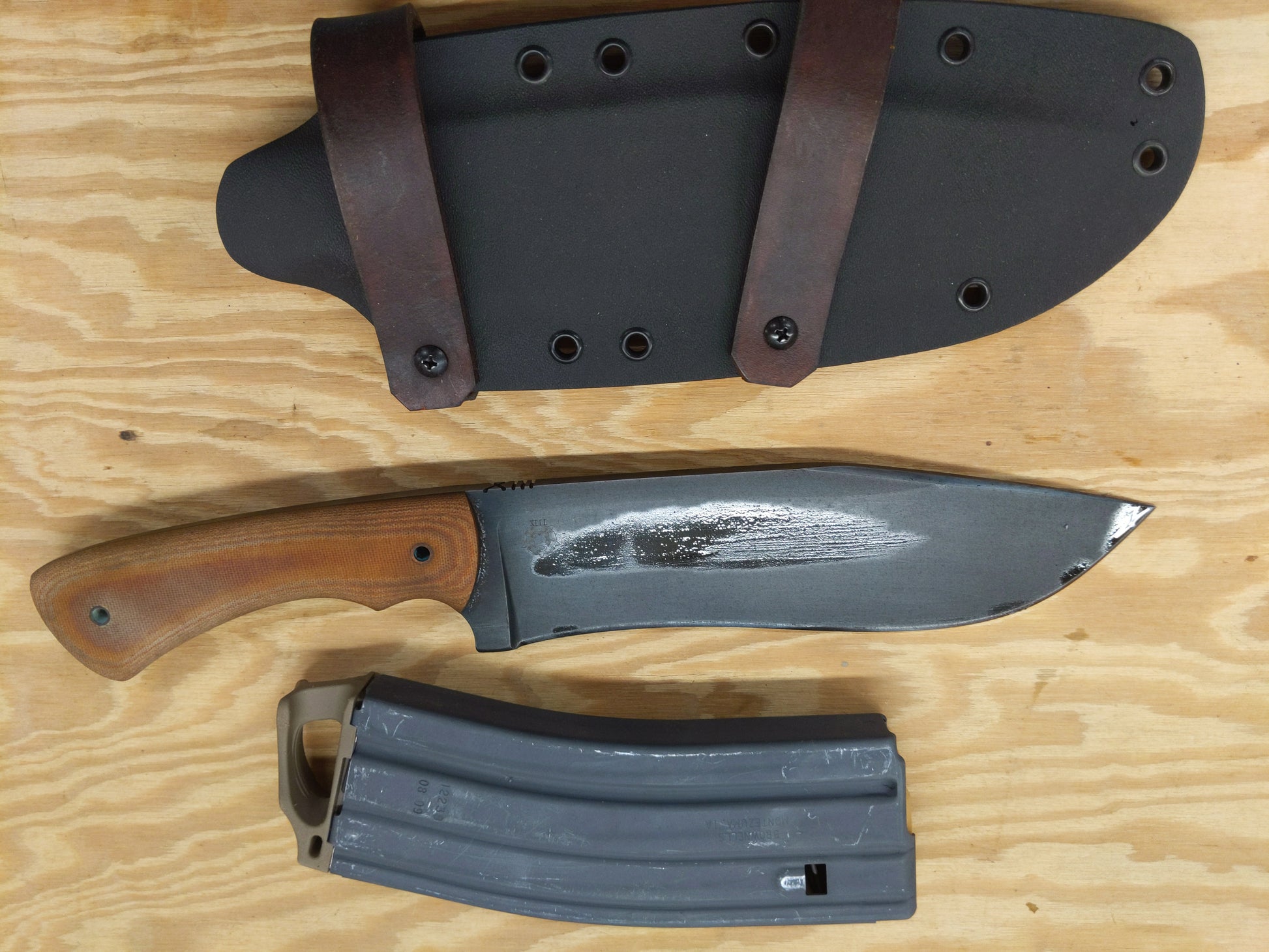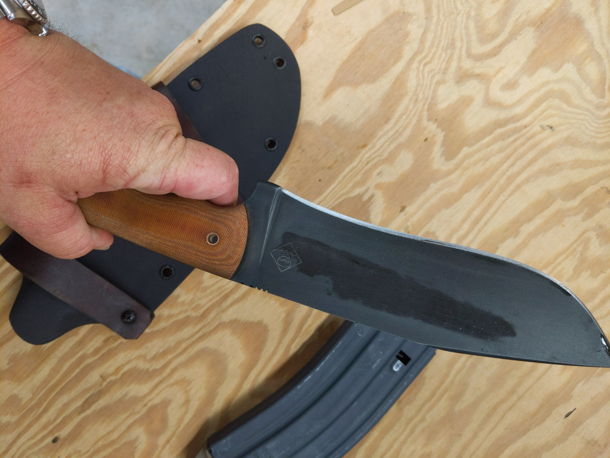 The Brushbeater Bolo...an 8 inch cutting edge, quarter-inch thick chunk of 80CRv2 blade handcrafted right here in NC by Kyle Tepfer. What more needs to be said?