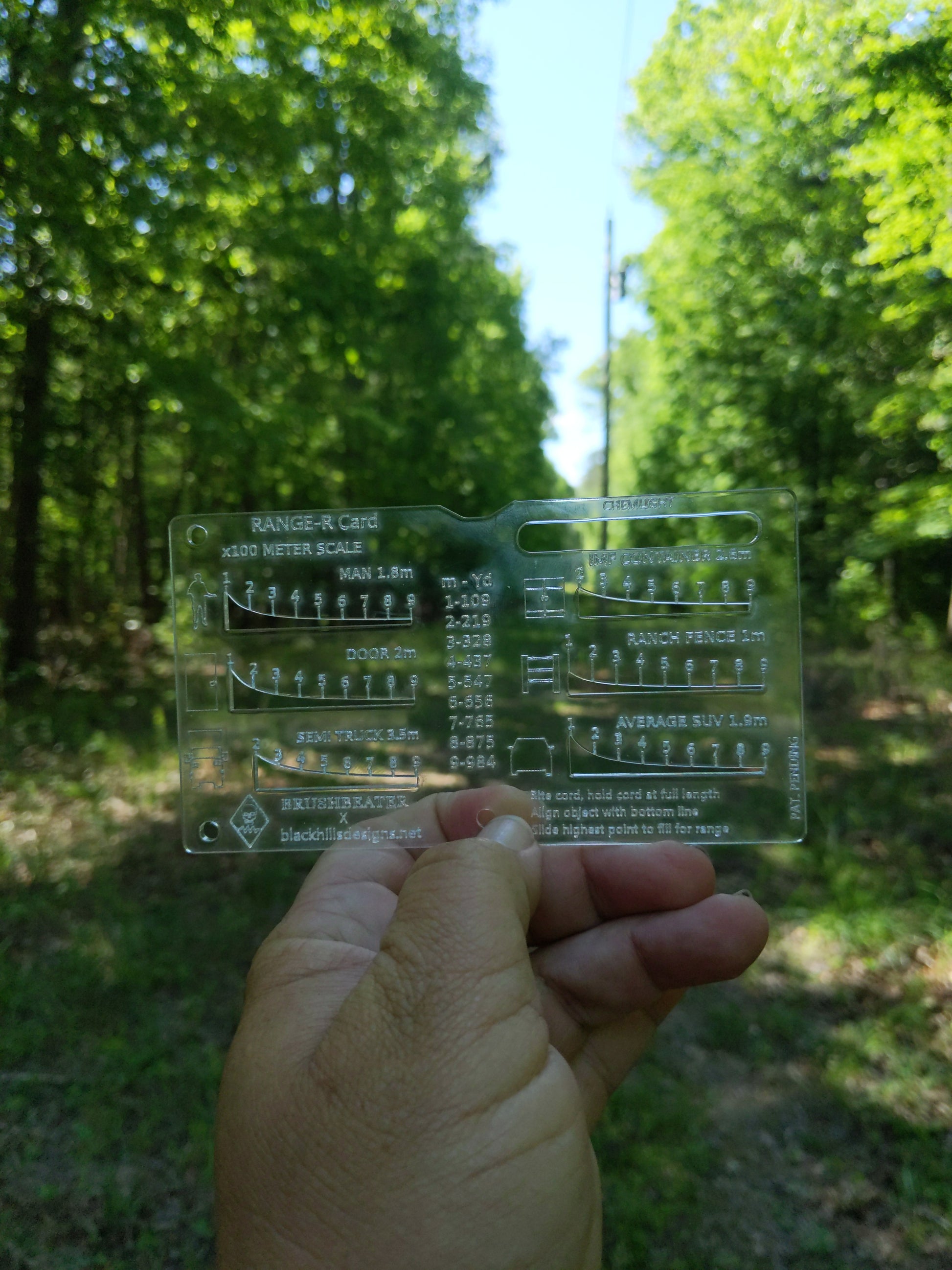 Similar in function to the world famous PSO BDC reticle used on Combloc weaponry the RANGE-R card gives off NO thermal, IR, EM or SWIR signature. With a bombproof design and small footprint, add a Black Hills Designs RANGE-R card to your gear today. At a svelte 5.375″ x 3″, the Black Hills Designs RANGE-R Card is built to fit anywhere in your kit. The RANGE-R Card gives you the ability to range easily out to 900m without the use of electronics, emissions of any kind or dependence on GPS. The RANGE-R Card can be used as a standalone ranging solution or can be combined with traditional ranging mechanisms (Laser Range Finding, GPS, Milling, etc) to improve the accuracy of a given range. The polycarbonate card is perfectly sized for a BDU pocket. binocular pack or GP pouch. At roughly 1 oz the card disappears effortless into your kit. The card is also an excellent instruction tool to help students develop the “eye” for ranging and can be used to develop intuitive ranging. The wide selection of Reticles available in the card also allows a user to range any object of similar height to enable crossovers in OCONUS environments.