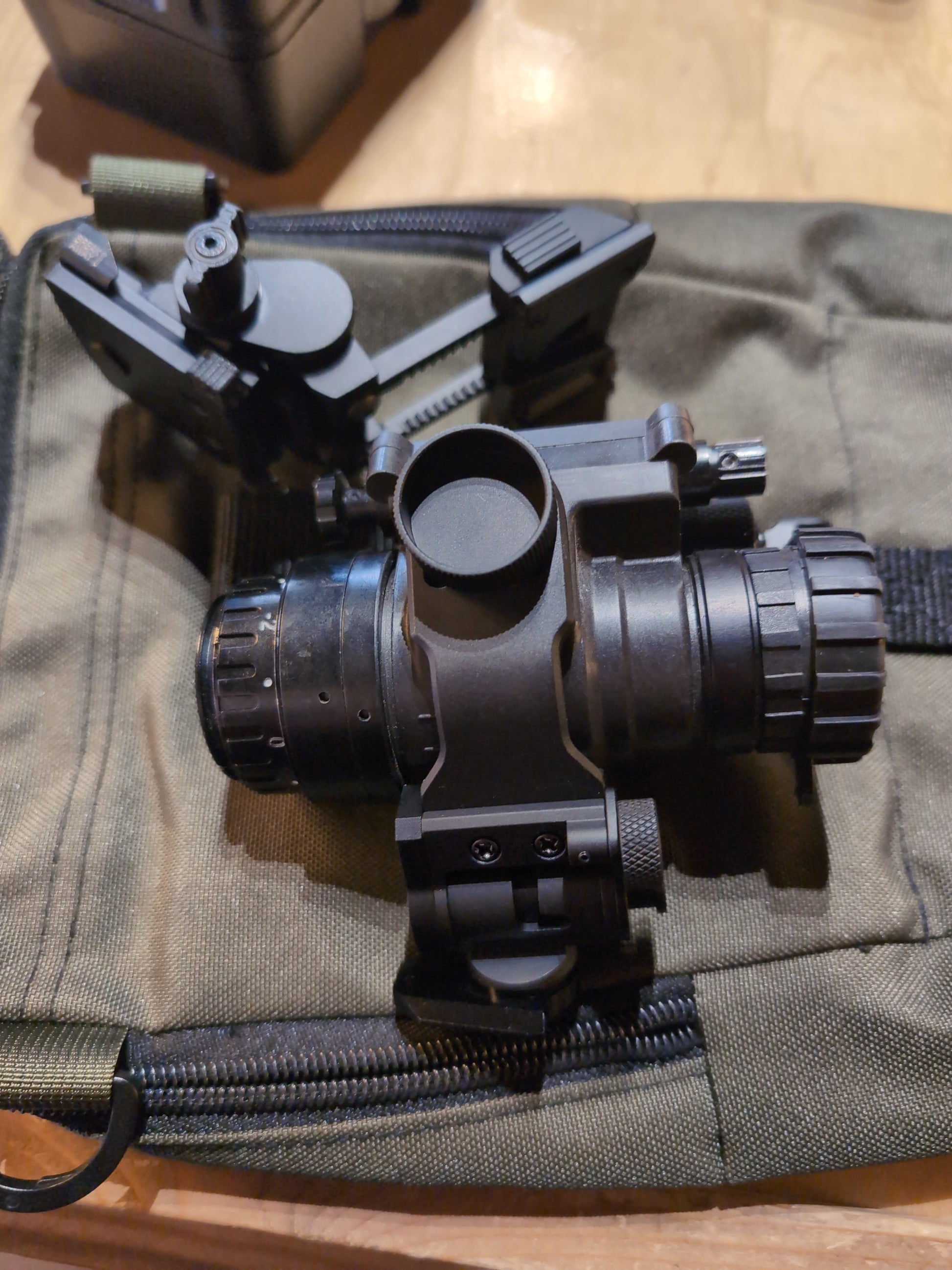 Used AGM PVS-14 AL3. Green Phos Gen 3 tube. Customer trade in, includes our upgraded dovetail mount and j arm. NO DATA SHEET INCLUDED.