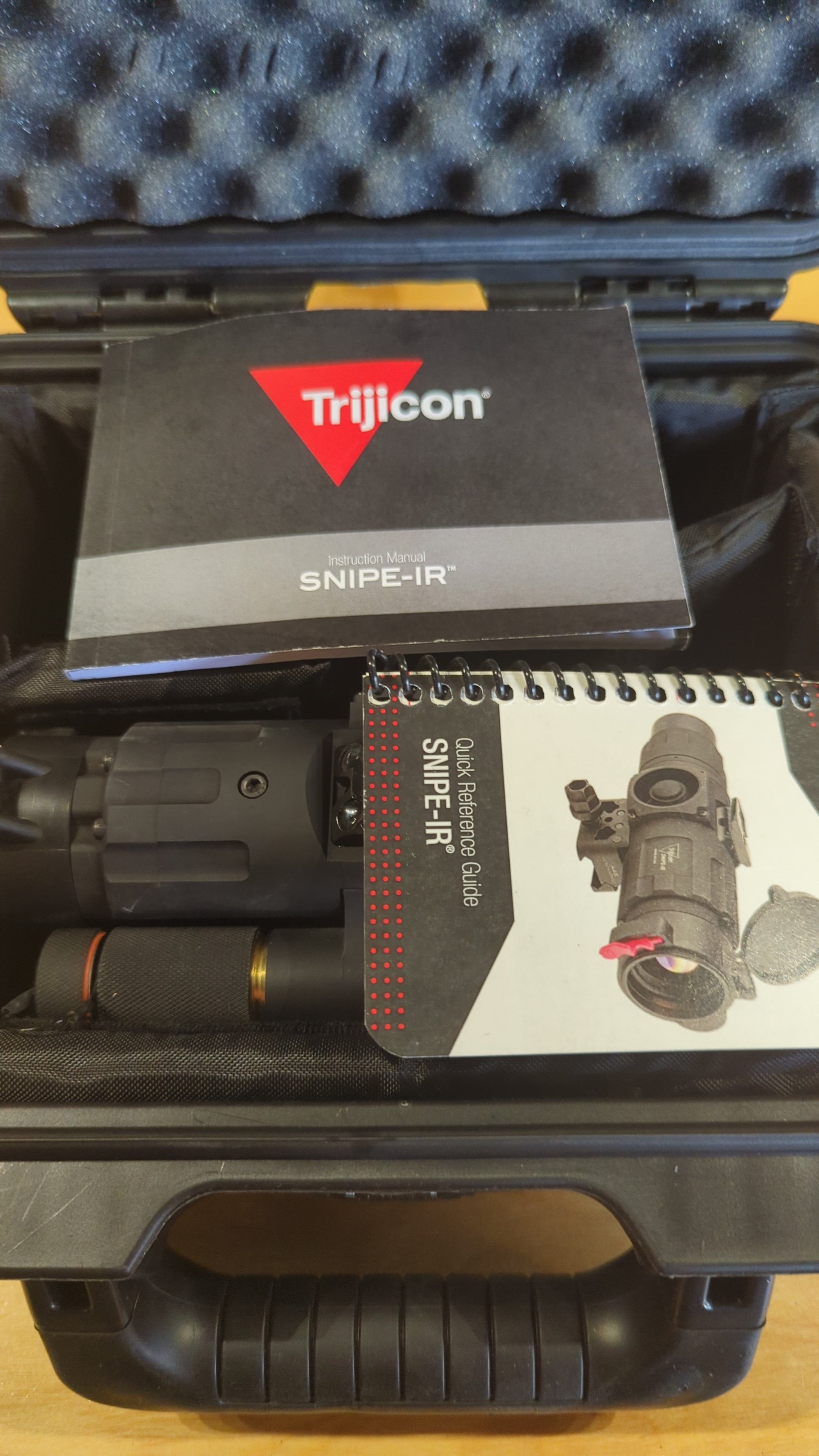 Scout's notes: Lightly used Trijicon Snip-IR 640 clip on thermal optic. One of the most sought after thermal optics that changed the game in thermal, featuring a BAE systems core and ultra rugged design. Local trade in, very lightly used, comes in original pelican case. Compare to new old stock price of $10k.